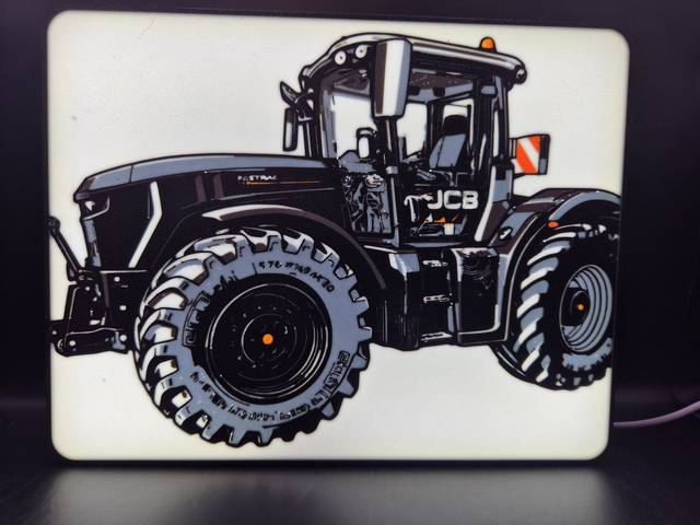 This 3D Printed Lightbox is a unique and eye-catching addition to any indoor space. With its design featuring a JCB FastTrac 4220, this lightbox is sure to stand out.
