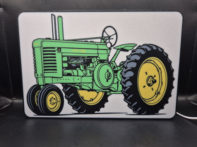 This 3D Printed Lightbox is a unique and eye-catching addition to any indoor space. With its design featuring a John Deere Model A, this lightbox is sure to stand out.