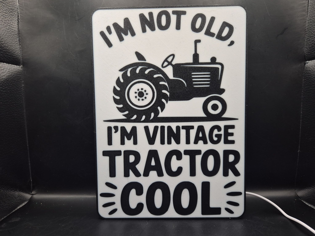 This 3D Printed Lightbox is a unique and eye-catching addition to any indoor space. With its design featuring a Light Up Sign Not Old Vintage Tractor Cool, this lightbox is sure to stand out.