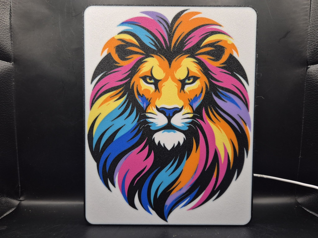 This 3D Printed Lightbox is a unique and eye-catching addition to any indoor space. With its design featuring a Light Up Sign Of A Colourful Lion, this lightbox is sure to stand out.