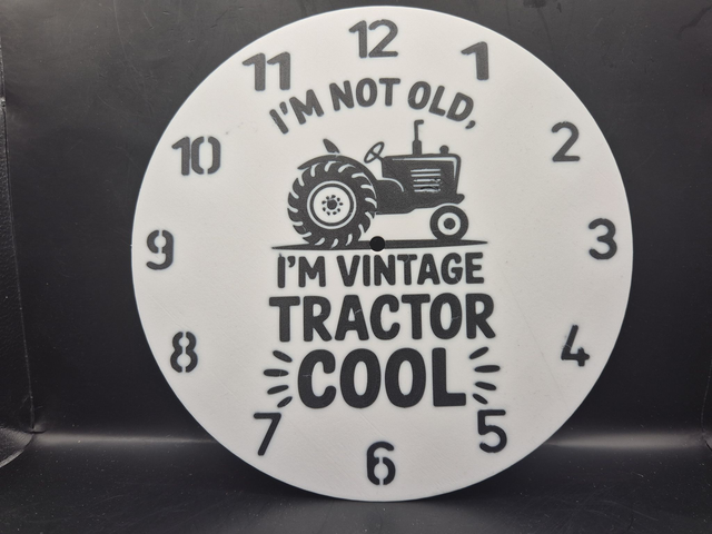 3d printed clock featuring a Not Old Vintage Tractor Cool