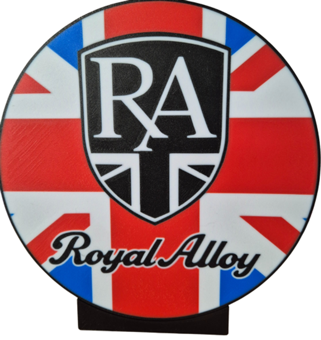 3d printed lightbox featuring the Royal Alloy Scooter logo on a Union Flag Background